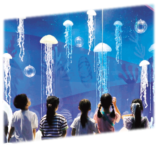 在浙江省嘉兴市,小朋友观赏主题科普展。
