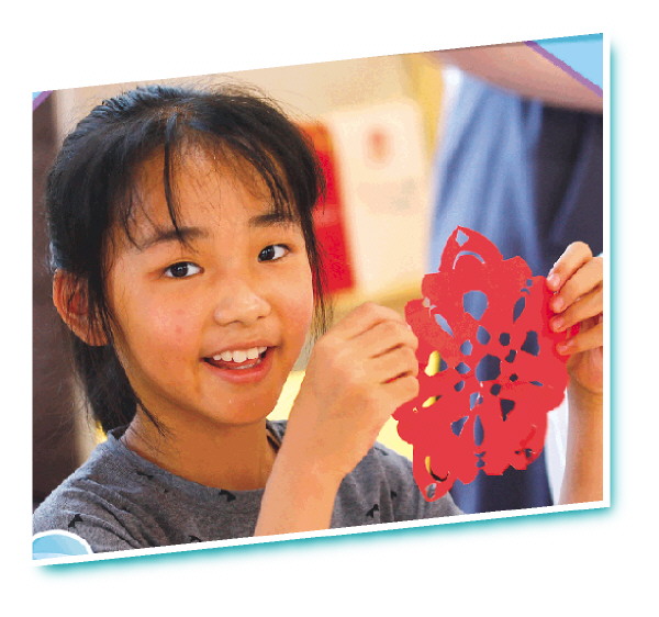 在云南省曲靖市,小朋友展示自己的剪纸作品。