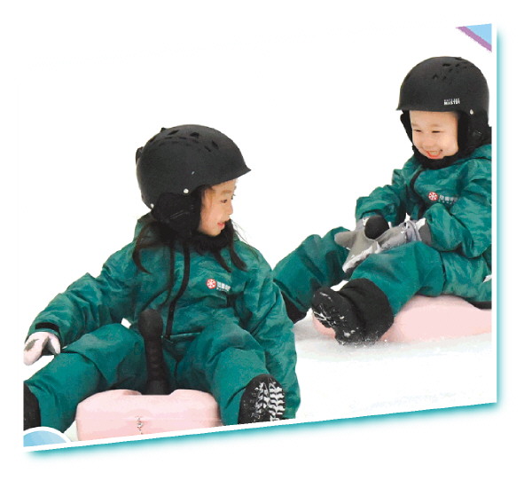 在河北省石家庄市,小朋友在雪场体验冰雪运动。