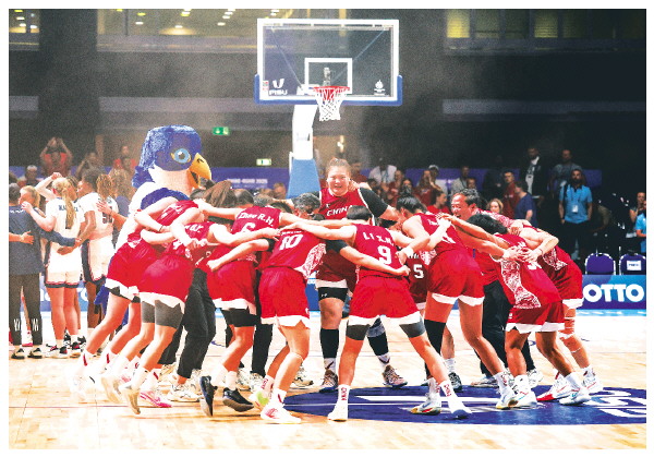 ▲7月25日,中国队球员庆祝胜利。 新华社记者张帆 摄