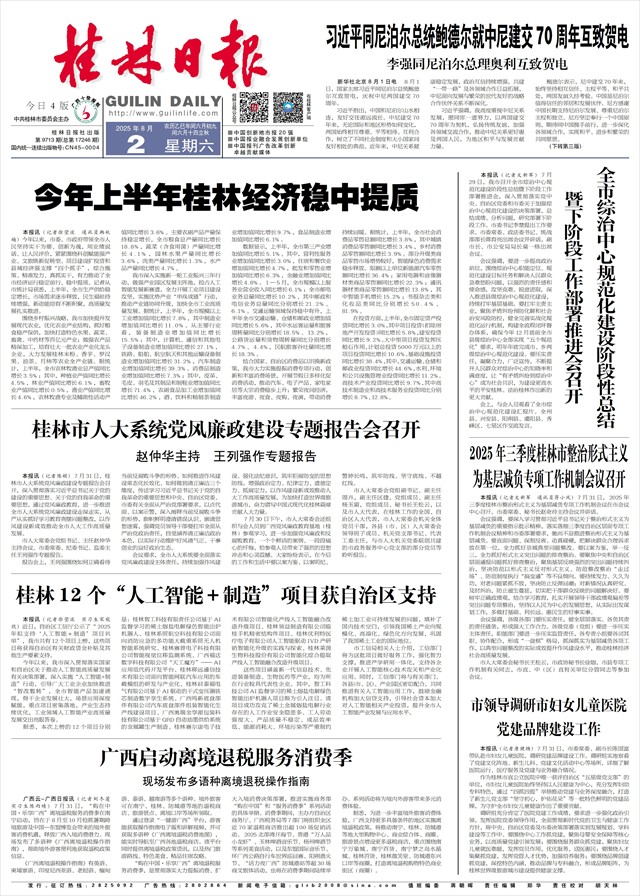 今年上半年桂林经济稳中提质   本报讯(记者徐莹波 通讯员韩秋越)今年以来,市委、市政府带领全市人民坚持实干为要、创新为魂,用业绩说话、让人民评价,紧紧围绕科创赋能强产业、文旅焕新促转型、项目建设扩投资和县域经济强支撑“四个抓手”,综合施策、精准发力、真抓实干,有力推动了全市经济运行稳定前行、稳中提质。记者从市统计局获悉,上半年,全市生产供给稳定增长,市场需求逐步释放,民生福祉持续增强,新动能培育不断积聚,高质量发展扎实推进。