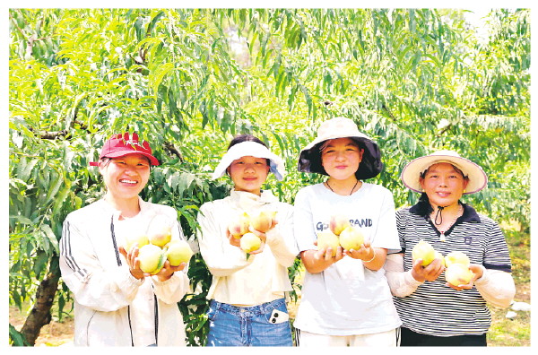 手捧新鲜采摘的鹰嘴桃,果农们笑容灿烂。