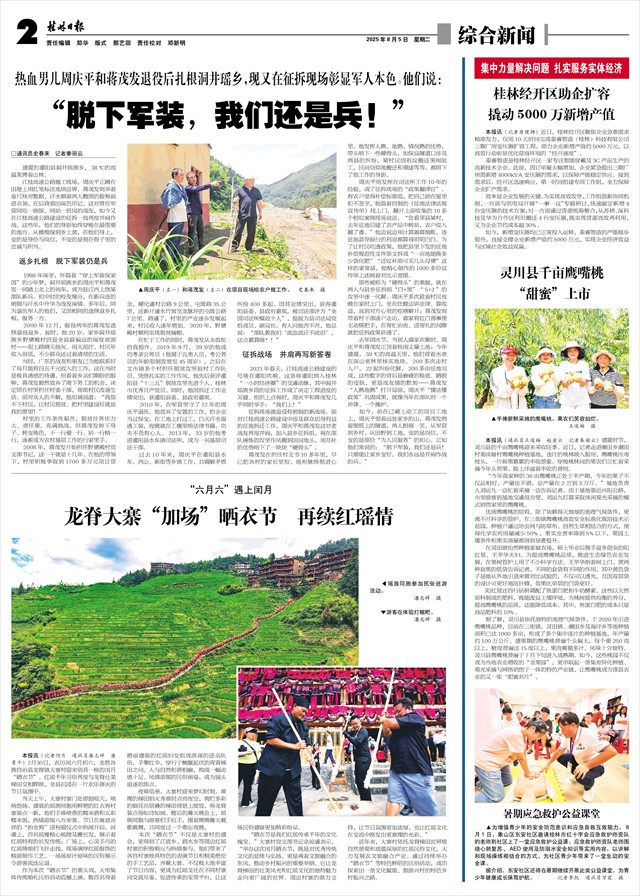 江桂高速公路施工现场,周庆平正蹲在田埂上用红笔标注地块边界,蒋茂发则举着卷尺核对数据,汗水顺着两人黝黑的脸颊淌进衣领,在后背洇出深色印记。这对曾在军营同吃一锅饭、同站一班岗的战友,如今又在江桂高速公路建设的征拆一线再度并肩作战。这些年,他们的身影始终穿梭在最需要的地方。从橄榄绿到乡土黄,在他们身上,变的是身份与岗位,不变的是刻在骨子里的忠诚与担当。