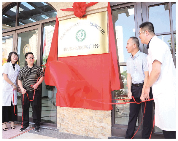 桂林医科大学二附院临床心理科正式开科。图为揭牌仪式现场。