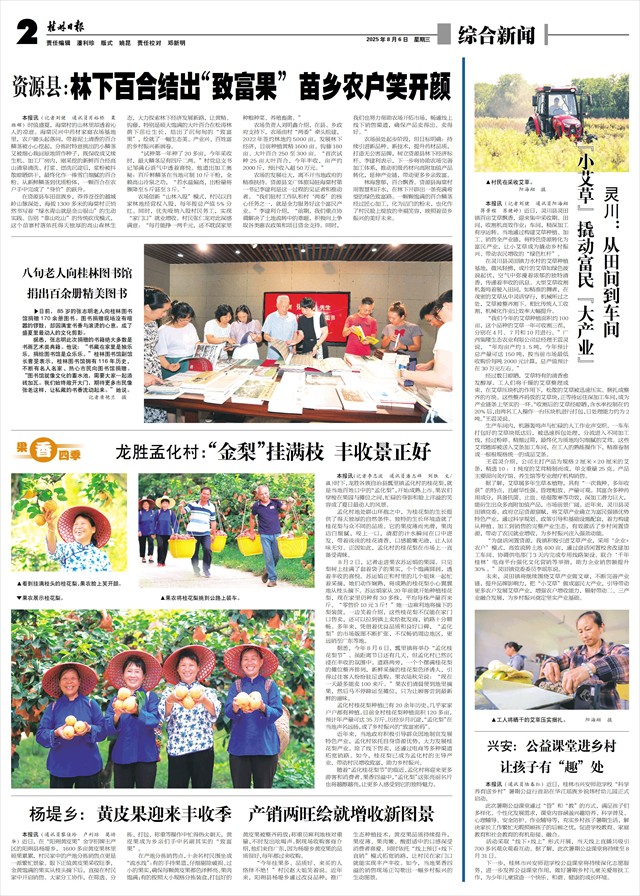 本报讯(记者李忠波 通讯员潘志祥 刘胜 文/摄)时下,龙胜各族自治县瓢里镇孟化村的桂花梨,就是当地百姓口中的“孟化梨”,开始成熟上市。果农们穿梭在果园与摊位之间,忙碌的身影和脸上洋溢的笑容成了夏日最动人的风景。