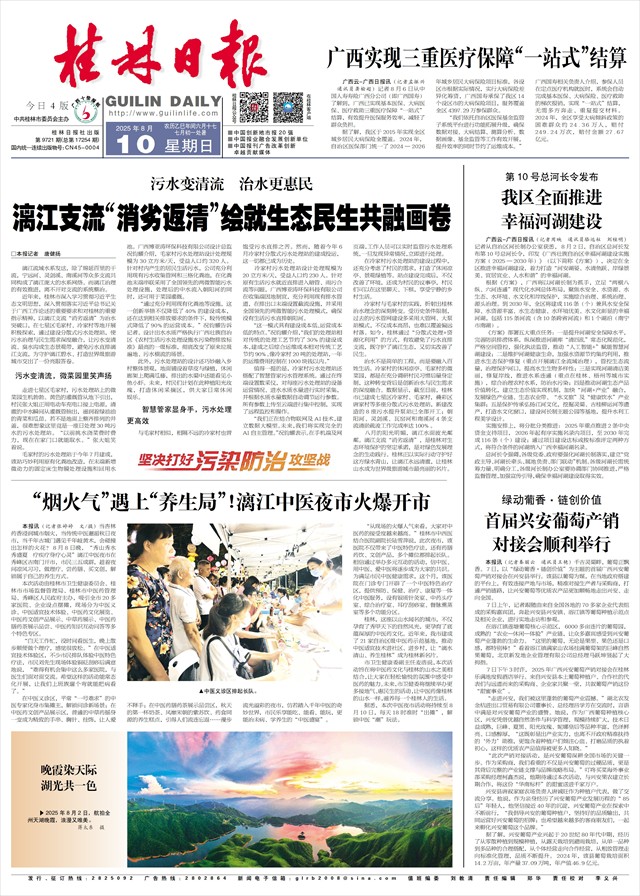 广西云-广西日报讯(记者周映 通讯员骆远柱 刘桂明)记者从自治区河长制办公室获悉,8月2日,自治区总河长发布第10号总河长令,印发《广西壮族自治区幸福河湖建设实施方案(2025—2030年)》(以下简称《方案》),决定在全区推进幸福河湖建设,着力打造“河安湖晏、水清鱼跃、岸绿景美、宜居宜业、人水和谐”的幸福河湖。