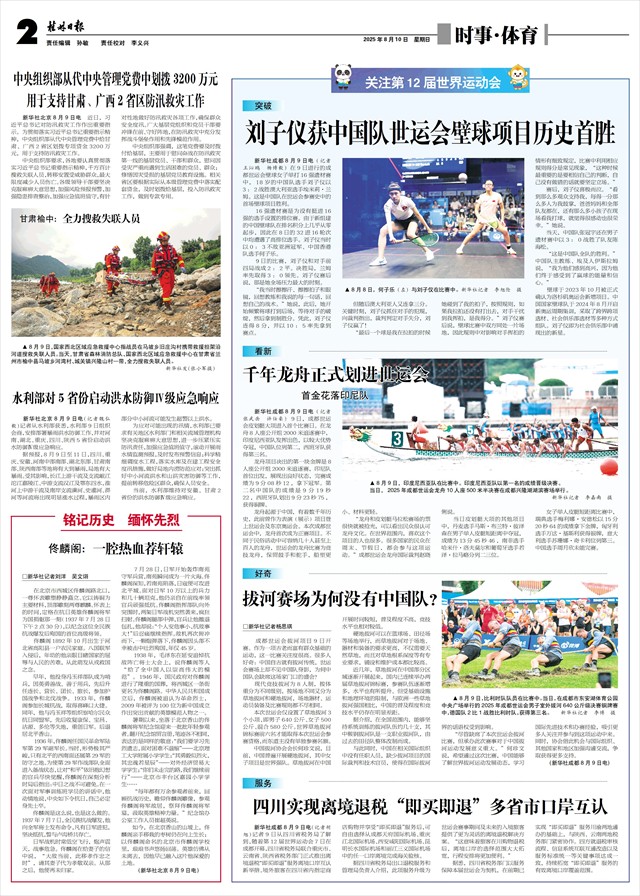 新华社成都8月9日电(记者张武岳 许仕豪)9日,成都世运会皮划艇大项进入首个比赛日。在龙舟8人座公开组2000米追逐赛中,印度尼西亚队发挥出色,以较大优势夺冠,中国队位列第二,西班牙队获得第三名。