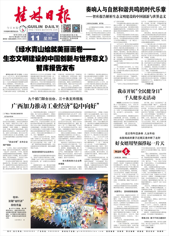 8月10日,新华社国家高端智库与习近平生态文明思想研究中心在京共同发布《绿水青山绘就美丽画卷——生态文明建设的中国创新与世界意义》智库报告。报告指出,绿水青山就是金山银山理念成为生态文明建设的核心理念和行动指南。中国走出了一条生产发展、生活富裕、生态良好的文明发展道路。这条绿色发展之路既造福了中国,也造福了世界。