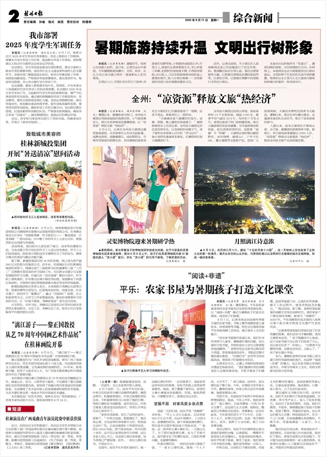 本报讯(记者李思静)盛夏时节,桂林山水间游人如织,连日来,记者在走访中看到,今年暑期旅游热潮中,文明、有序、礼让之风正成为漓江两岸一道清新怡人的风景线。