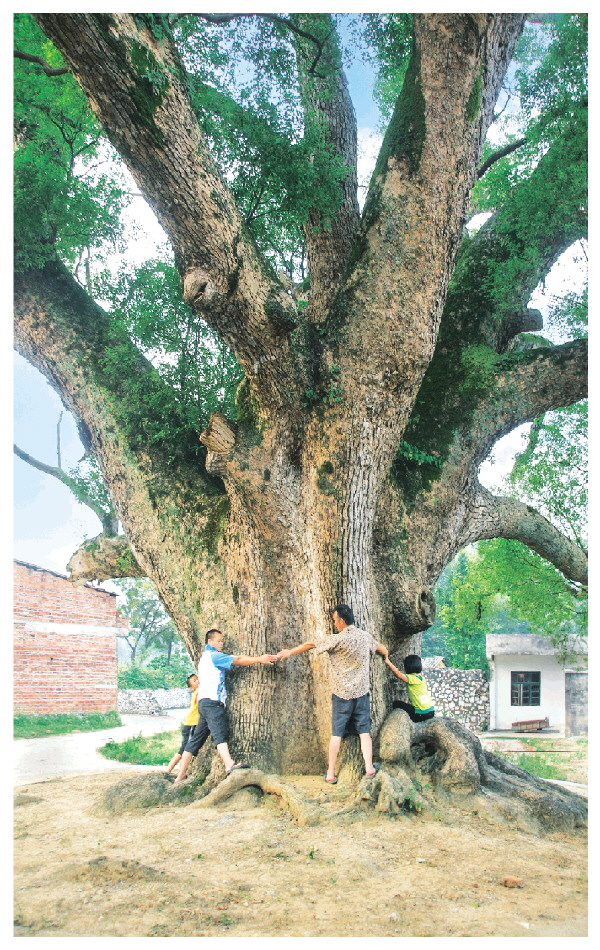 图②:隆家村的古樟需要八九个人才能抱拢。