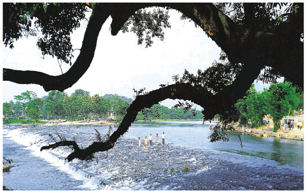 在古树的映衬下,灵渠更显出它的灵动和活力。(兴安县文广体旅局供图)