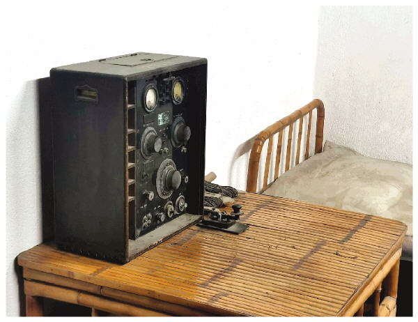 在桂林“八办”二楼,有一间不起眼的房间,一部老式的木质外壳电台静静安放在简易的竹木桌子上,锈迹已经爬满了电键,另一边的电线胶皮也已开始剥落。但在战争年代,就是这样一部不起眼的电台,承载了关系国家民族存亡的重任。解说员告诉记者,如今展出的是一部完整的电台,有电台、电线、电键、手摇发电机等设备。而在当年,天线隐蔽在墙壁里,电台和电键暗藏在房间衣柜的隔层里,从表面看,这个房间就只是个摆放着床铺、桌子、衣柜的普通房间。