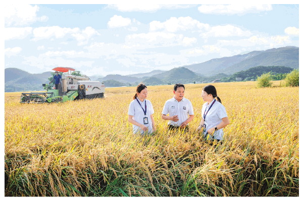 ◥兴安县纪委监委聚焦惠农政策落实、涉农补贴发放等重点领域开展靶向监督,组织力量深入基层一线,深挖细查问题线索,以精准监督推动解决群众急难愁盼问题。图为该县纪检监察干部在兴安镇冠山村水稻示范种植基地走访了解有关情况。 王国楚 摄