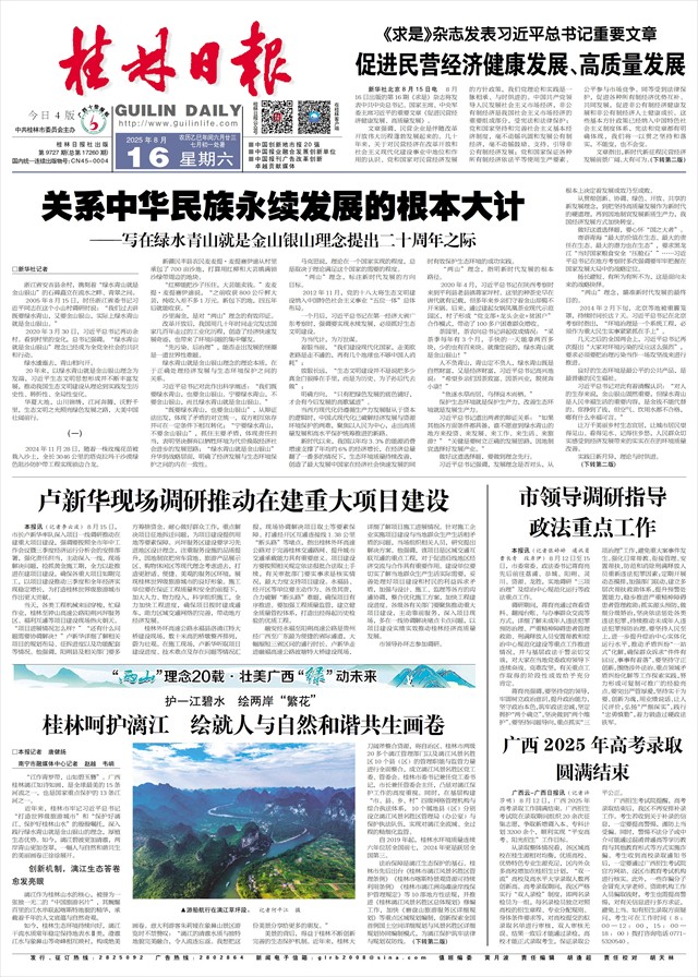 法治保障是漓江生态保护的基石。桂林市先后出台《桂林市漓江风景名胜区管理条例》《桂林市喀斯特景观资源可持续利用条例》《桂林市漓江洲岛滩涂岸线保护管理规定》等10部地方性法规,并推进《桂林漓江风景名胜区总体规划》修编工作,加快《磨盘山旅游服务区详细规划》等重点区域规划编制,创新探索全国首例国土空间详细规划与风景名胜区详细规划协同编制模式,为漓江保护筑牢法律与规划双防线。(下转第二版)