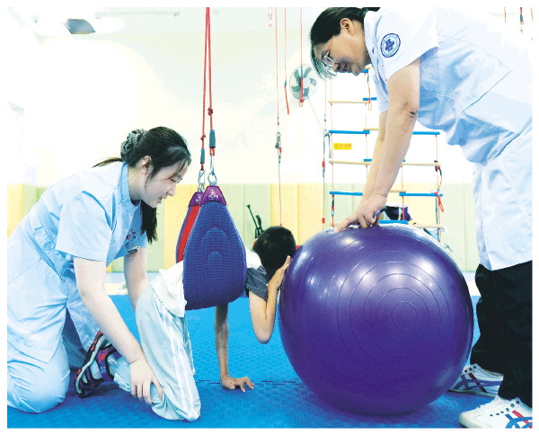 8月18日,在山东省滨州市惠民县人民医院儿童康复科,医生为一名脑瘫患儿进行康复训练。2025年8月19日是第八个中国医师节,今年的节日主题是“德馨于行,技精于勤”。 新华社发(王军 摄)