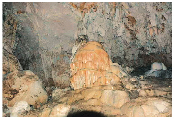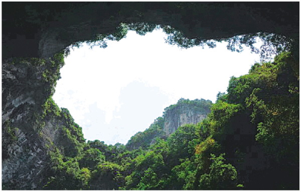 进了天坑,就进了神奇之境。这些地方真是耐人寻思,奇特得令人惊呼。现在我又置身在天坑溶洞内,暗暗的溶洞,从未有朝晕,也未有夕照。我好奇地走进洞口,目光竟被那些嶙峋的石壁、奇幻多姿的造型所吸引。这时,如果能听到一种野性的呐喊、哪怕是鬼叫狼嚎,可能会别有一番韵致?地质时代与历史的变迁,驱使我陷入一种对原始图腾与现代文明交织的矛盾和惆怅……冥冥之中,我感受一种粗犷的野性,嗅闻到一种远古、蛮荒的腥味儿。于是,瞬间有了个意念,那就是在天坑这深邃的怀抱,哪怕晕厥几分钟也是痛快和值得的。