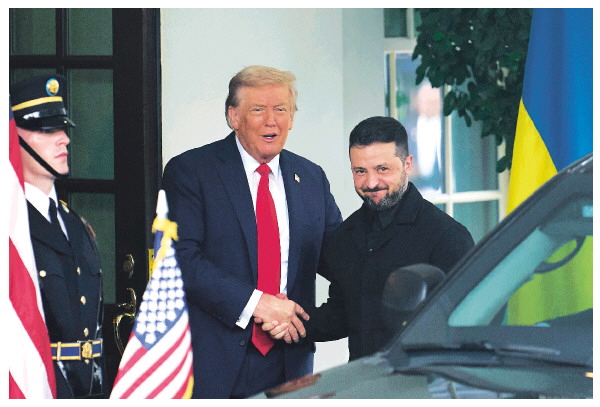 美国东部时间当日下午1时许,乌克兰总统泽连斯基时隔半年再次踏入美国白宫,与美国总统特朗普举行会晤。泽连斯基今年2月访美同特朗普会晤时发生激烈争吵,提前离开白宫。 新华社记者胡友松 摄