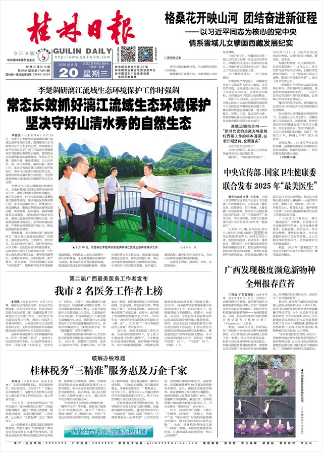 本报讯(记者周绍瑜)8月19日,市委书记李楚率队实地调研漓江流域生态环境保护工作,强调要深入学习贯彻习近平生态文明思想,贯彻落实习近平总书记关于广西工作论述的重要要求和对桂林的重要指示精神,按照自治区党委和政府的部署要求,坚持实干为要、创新为魂,用业绩说话、让人民评价,进一步压实责任、解决问题、推动工作,常态长效抓好漓江流域生态环境保护,坚决守好山清水秀的自然生态,厚植桂林高质量发展生态底色,为世界级旅游城市建设奋进突破提供坚实生态支撑。