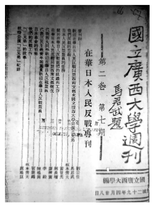 图③:《国立广西大学周刊》第2卷第7期《在华日本人民反战专刊》封面。