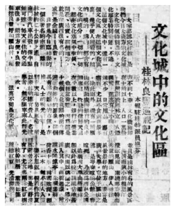 图④:昆明《扫荡报》驻桂特派员挹芬采写稿件——《文化城中的文化区:桂林良丰巡视记》,载于该报1944-2-5第2版