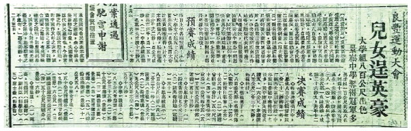 图②:1943年12月,良丰小镇举办了“良丰运动会”。参赛选手达五百余名,有田径和球类等运动项目。桂林出版的各大报纸报道运动会盛况。图为桂林《大公报》的一篇报道。