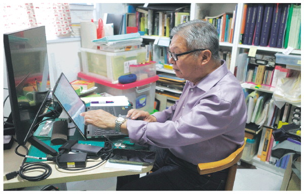 ◤8月23日,新加坡学者林少彬在位于新加坡的家中查看资料。