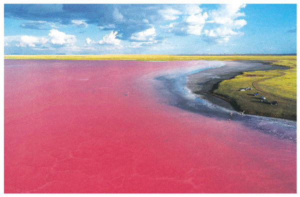 位于哈萨克斯坦阿克莫拉州的科贝图兹湖,因湖水中的一种微藻在高温干燥的夏季会产生β-胡萝卜素而使湖水呈现出从淡粉色到深玫红色的色彩变化,而得名“粉湖”,是该国著名的网红打卡景点。因旅游承载能力有限和环境问题,科贝图兹湖从2020年起实行封闭管理,并进行生态修复。今年夏季湖区重新对公众开放。