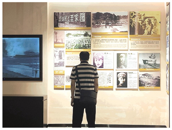 参观者在桂林秧塘机场飞虎队遗址公园观看展示桂林抗日航空英烈事迹的展板。 记者周文琼 摄
