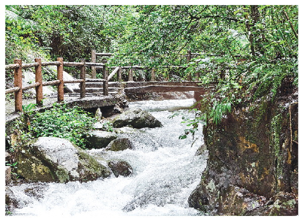 村后的山谷中,茂林满山、绿荫蔽天,奔涌的山溪跌宕多姿,有30多个瀑布组成的多级串连瀑布群,其中落差最高处达30余米,气势磅礴,声响如雷。丰水期的时候,滩内的瀑布如孔雀开屏,如天女散花,形态各异,即使是大雨过后,流水依然清澈,不见一点泥沙。这里最有名的还是蝴蝶,有自然繁衍的蝴蝶几百个品种,其中较名贵的有梁祝蝶、佛蝶、虎斑蝶、凤尾蝶、七星紫光蝶、枯叶蝶,更有极其珍贵的中华帝王蝶。