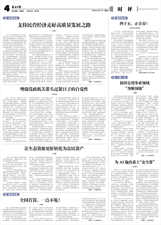 从国内实践看,有助于推动人工智能赋能高质量发展。实施“人工智能+”行动,充分发挥我国数据资源丰富、产业体系完备、应用场景广阔等优势,加强人工智能与各领域广泛深度融合,助力传统产业改造升级,开辟战略性新兴产业和未来产业发展新赛道,助力实现经济高质量发展,推动全体人民共享人工智能发展红利。