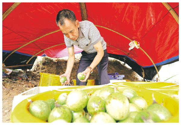 村民在挑选采摘的百香果。 莫京霖 摄