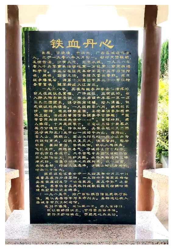 吴展将军纪念园里的石碑上记述着他的生平事迹。(资料图片)