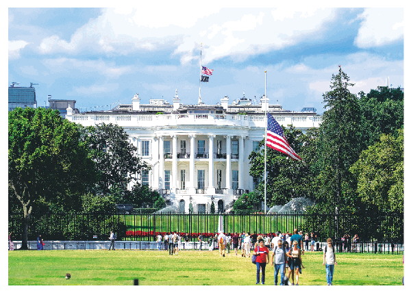 8月27日,在美国首都华盛顿,白宫降半旗向枪击事件受害者志哀。 新华社记者胡友松 摄