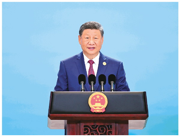 习近平发表致辞,代表中国政府和中国人民对来华出席上海合作组织峰会的国际贵宾表示热烈欢迎。