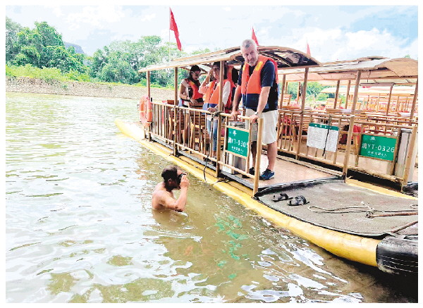 筏工潜水为游客寻找手机。(阳朔遇龙河景区公司供图)
