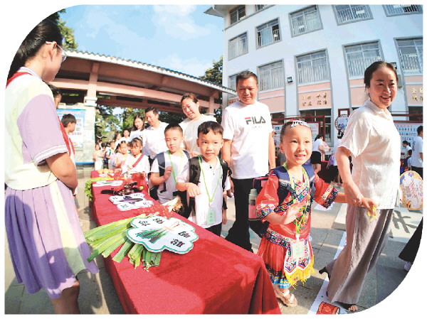 8月31日,市中华小学为新生举办迎新活动,孩子们身穿汉服或民族服装,在家长的陪伴下面带微笑步入校园,开启求学新征程。