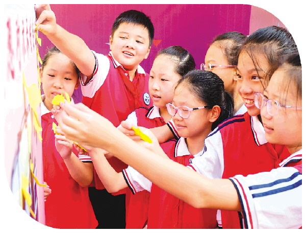 临桂区新城小学的学生们开心地许下新学期的心愿。