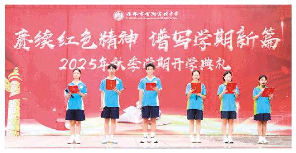 作为自治区“示范+特色”品牌学校,桂林市首附实验中学将紧紧围绕立德树人根本任务,通过党史学习教育、英雄事迹宣讲、红歌传唱等形式,持续深化红色教育实践活动,筑牢理想信念之基,谱写青春奋进之歌。此次开学典礼既是新学期的动员令,更是红色精神传承的新起点,首附学子将以青春之名续写红色华章。(吴天虎 张嘉欣)