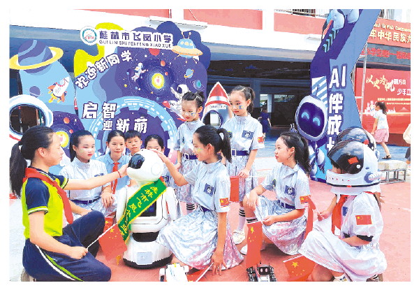 今年6月,桂林市飞凤小学成功入选全国中小学人工智能教育实验学校名单。本学期学校将以教育数字化转型为核心,不断创新构建“人工智能机器人+教师”的人机双师教学新模式。(李佳媛)