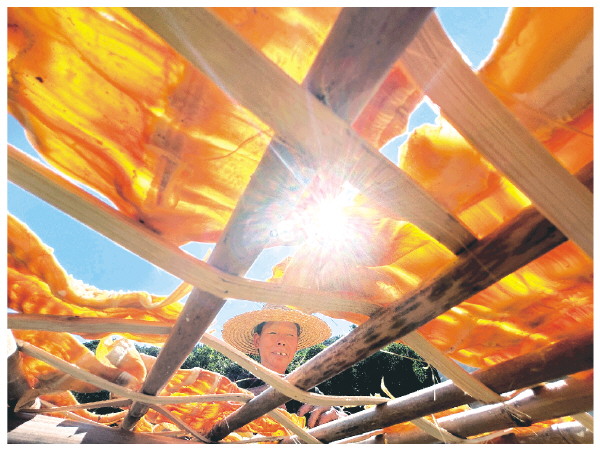 恭城瑶族自治县西岭镇德良村村民抢抓晴好天气晾晒黄笋制作笋干。 李茂香 摄