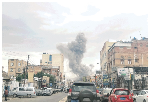 9月10日,也门首都萨那遭以色列军队空袭后升起浓烟(手机照片)。