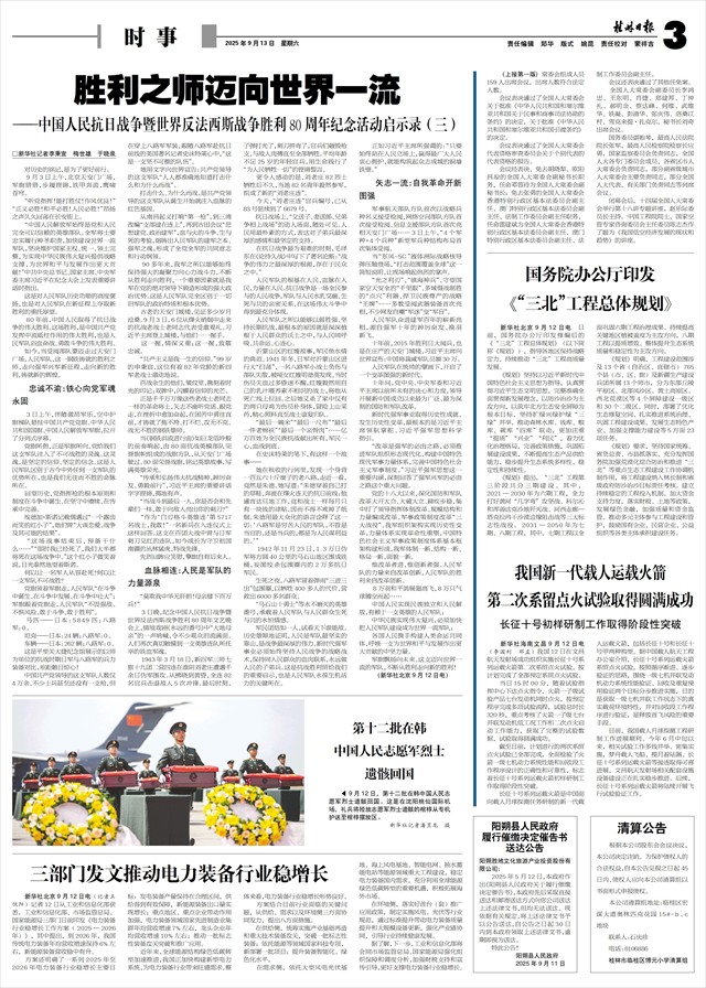 新华社北京9月12日电 日前,国务院办公厅印发修编后的《“三北”工程总体规划》(以下简称《规划》),指导各地区保持战略定力,持续推动“三北”工程高质量发展。