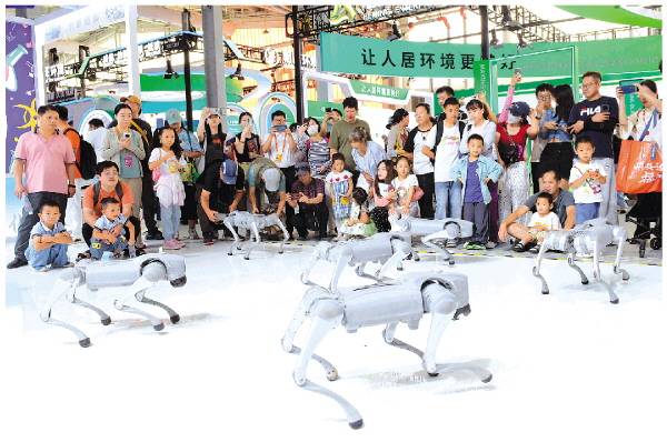 ▲9月13日,人们在服贸会环境服务专题展区观看机器狗表演。
