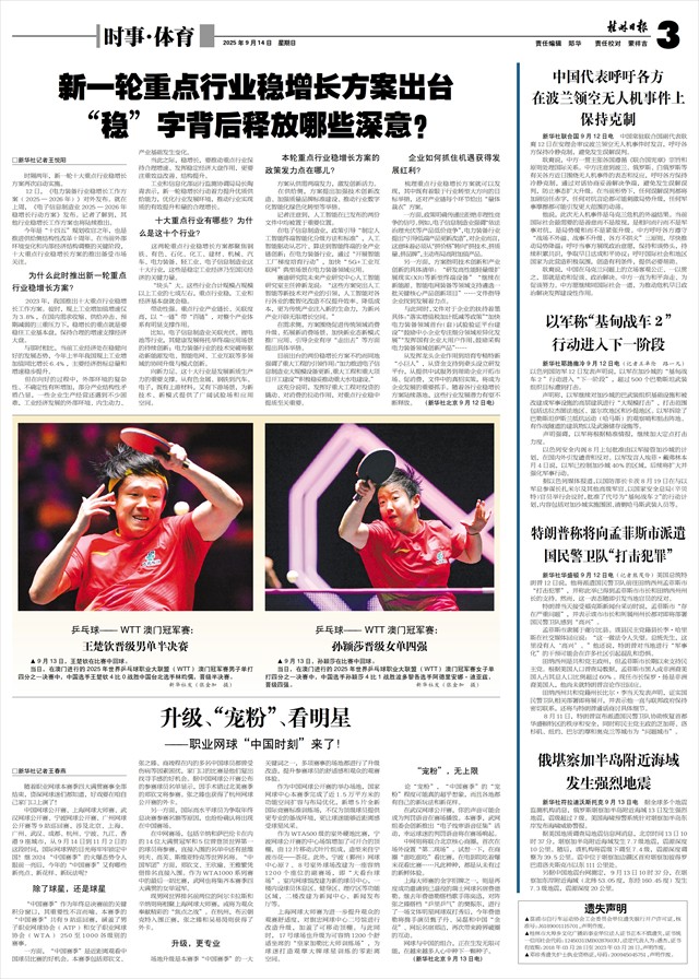 12日,《电力装备行业稳增长工作方案(2025—2026年)》对外发布。就在上周,《电子信息制造业2025—2026年稳增长行动方案》发布。记者了解到,其他行业稳增长工作方案也将陆续推出。