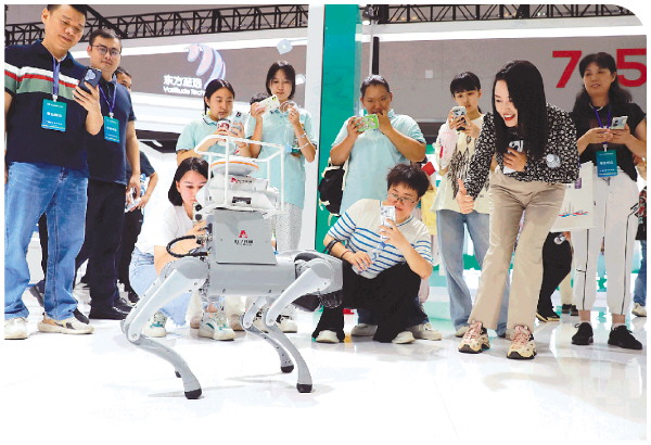 智能建造区成为焦点之一,博匠机器人、数字政通“棋麟”四足机器人以及整体爬升平台模架等智能装备吸引众多观众驻足。大家不仅近距离感受科技产品的实际应用,还在互动区踊跃参与体验。AI拍照机前排起长队,观众通过沉浸式互动领略智能技术的魅力。