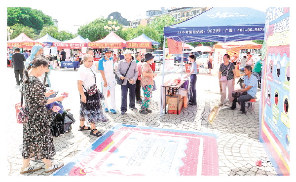 在活动现场,中国人寿桂林分公司员工表演了小品《朱阿姨的保险故事》,向群众展示了代理退保风险及如何正确引导维护消费者权益。