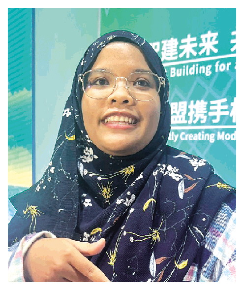 逛展过程中,Atikah Hanisah脚步不停,从绿色建材展区到智能建筑技术展区,每到一处都仔细聆听讲解。她表示,对展会所有展区都充满兴趣,后续会花更多时间深入了解,“希望未来有更多这样绿色环保的高科技产品引入马来西亚,为家乡的城市建设注入新活力”。