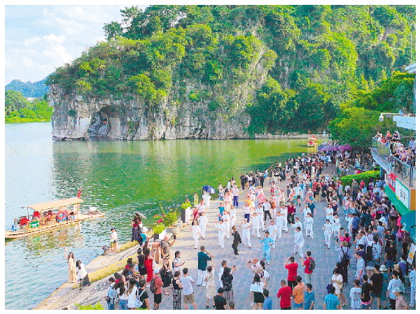 日前,来自奥地利的30多名中国健身气功爱好者在象鼻山前跟桂林本地的爱好者们以拳会友,在美丽的桂林山水间切磋技艺,传递友谊。 记者李凯 摄