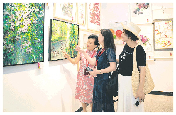 图⑩:“府学百年,墨韵千秋”桂林中学120周年校庆艺术展吸引了众多校友参观。
