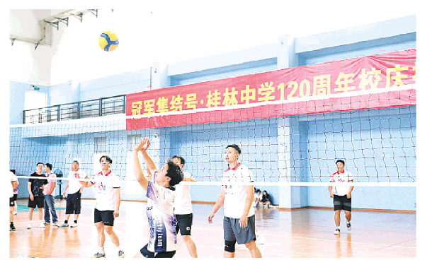 足球场上,活力同样满溢。在临桂校区的足球场上,校友们奔跑、传球、射门,尽情挥洒汗水。足球在队员们脚下传递,仿佛也传递着他们对母校的热爱与眷恋,场边的助威声此起彼伏,将体育赛事的热烈氛围推向高潮。